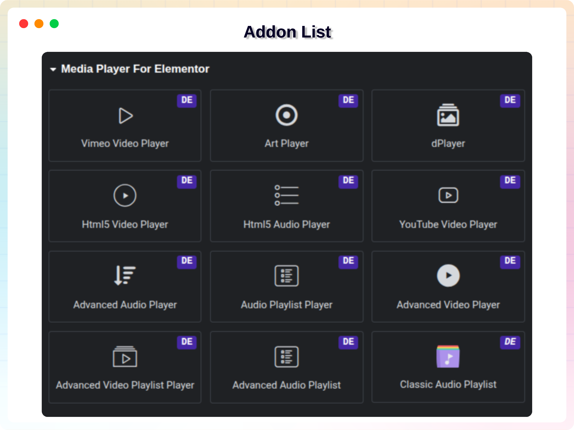 - Easy to use: Creating and embedding media players using this addon is fast and easy. Just install the Elementor Plugin and activate the add-ons to get started.